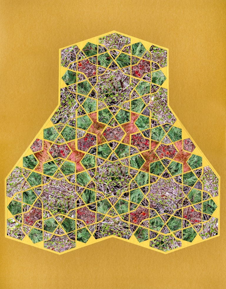 Near and Far is a series of photo collages. Using geometric patterns common in Islamic art and architecture from the Middle East and North Africa as inspiration, the collages combine original photographs of both Iranian and American landscapes.