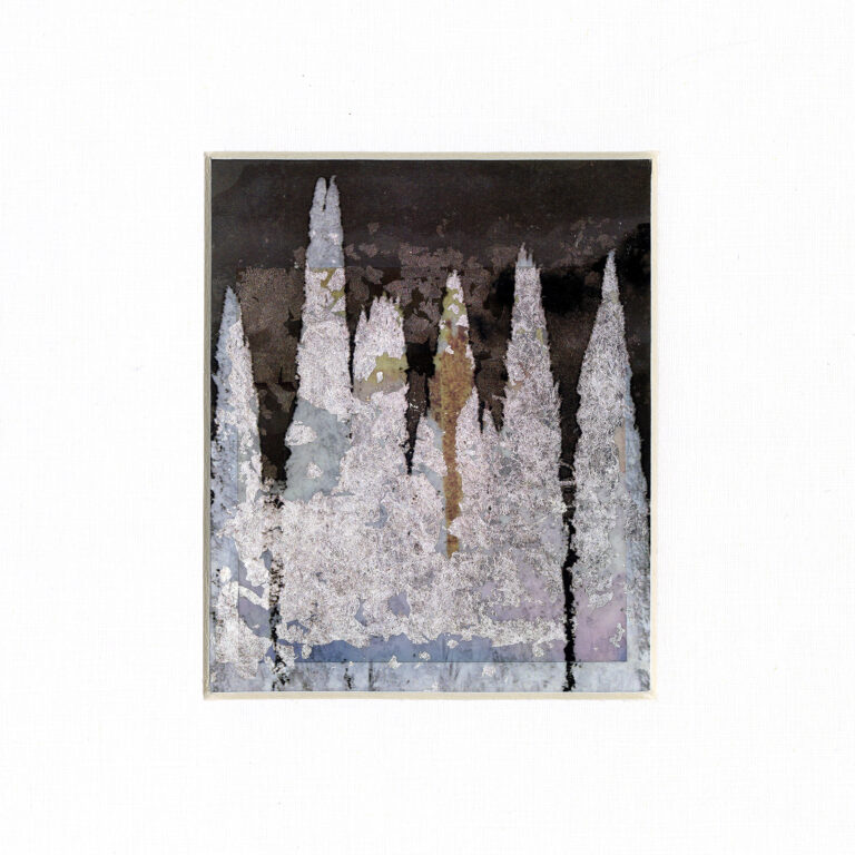 In this mixed media series, I depict the enduring power of the cypress tree using delicate silver and gold leaf, combined with Polaroids and transparent photos. The cypress stands as a witness to resilience and heritage—a symbol deeply rooted in the stories, values, and traditions that shape who we are.
